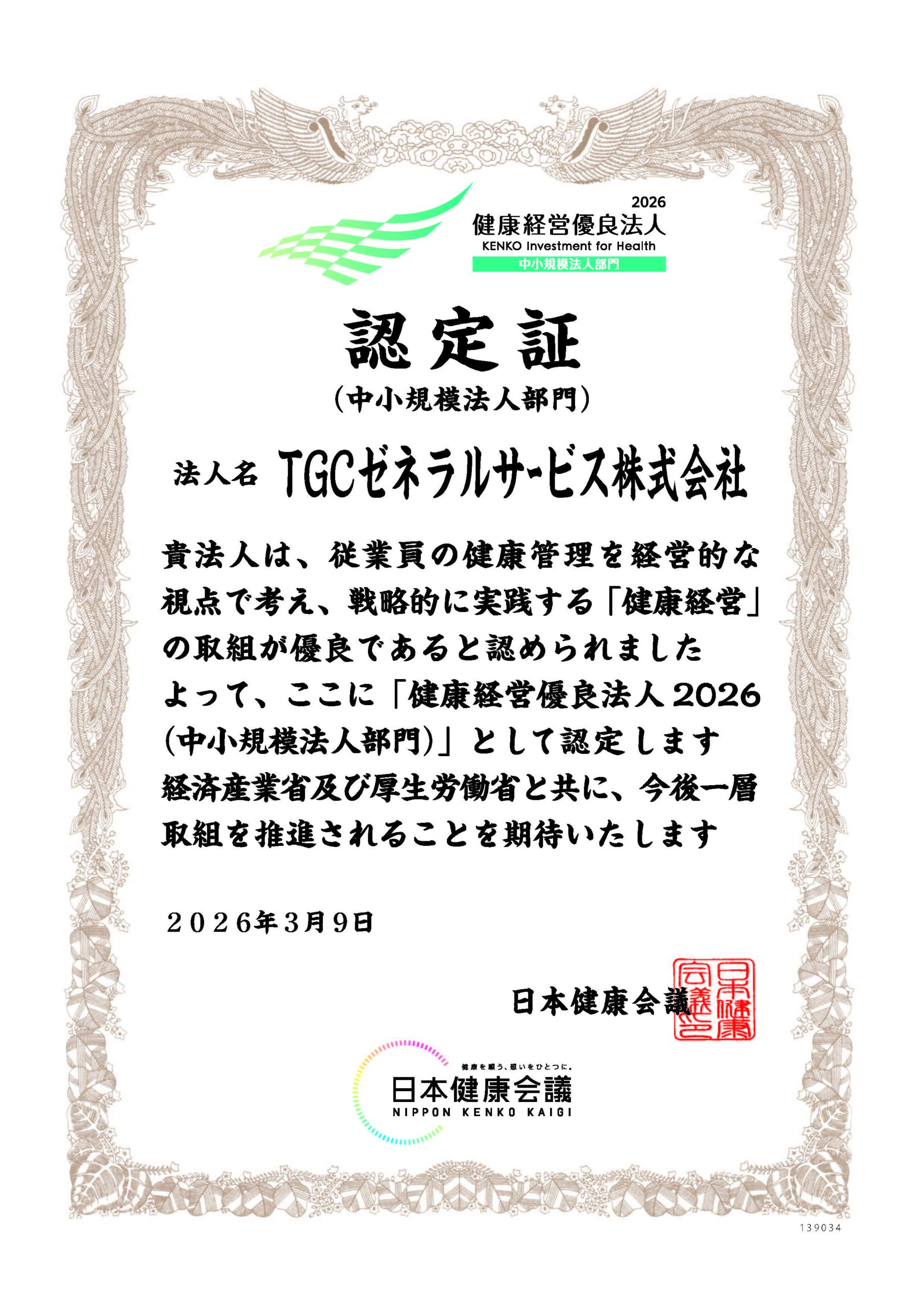 この度、当社は、経済産業省および日本健康会議が共同で実施する「健康経営優良法人認定制度」において、 「健康経営優良法人2026(中小規模法人部門)」に認定されましたので、お知らせいたします。